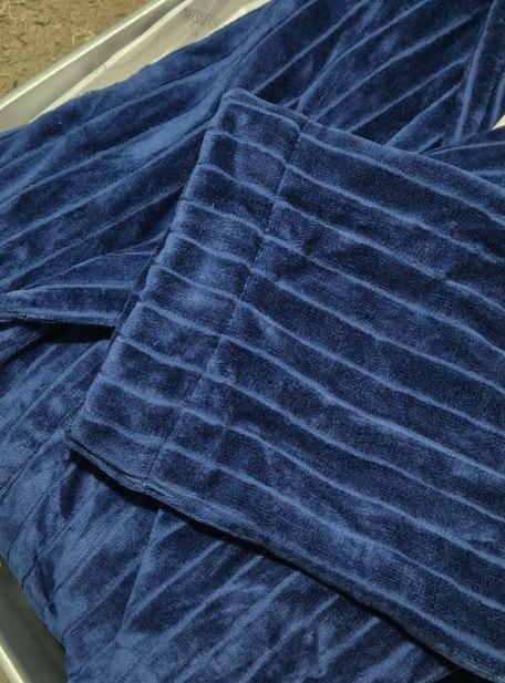 Зовнішня сторона велюрова, не затягується та дуже практична для домашнього користування. З середини халат має відкриту махру, яка чудово поглинає вологу та приємна на дотик.