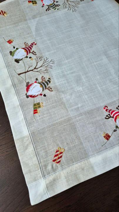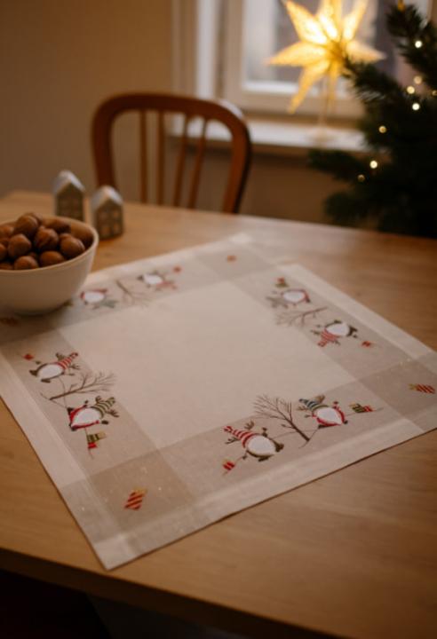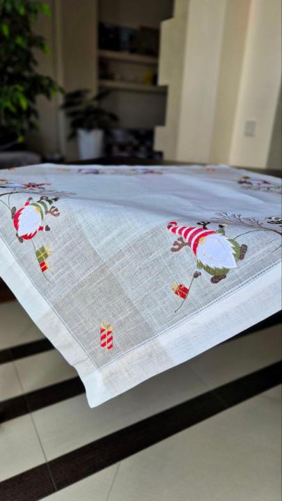 Серветка новорічна (Вишивка на білому гноми, 85х85)
