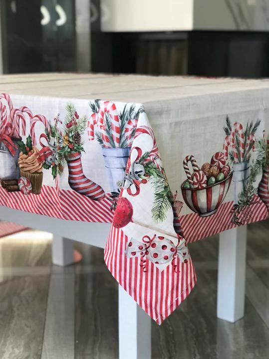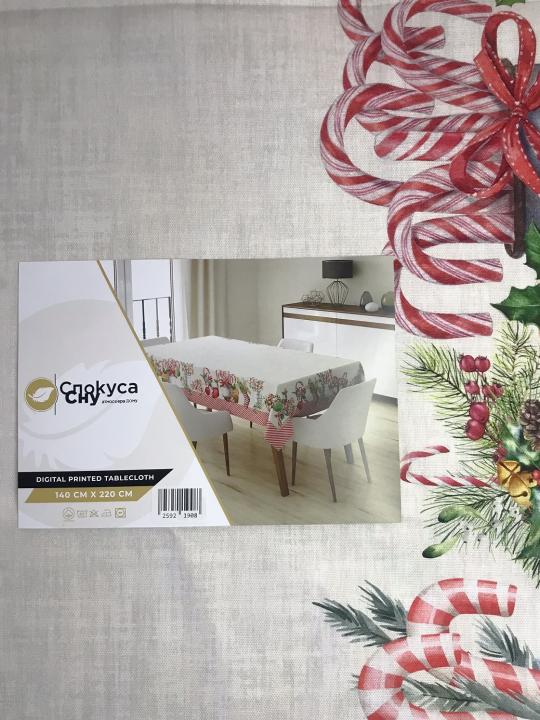 Скатертина Різдвяна, бавовна (Беж 02 Цукерка, 140х220)