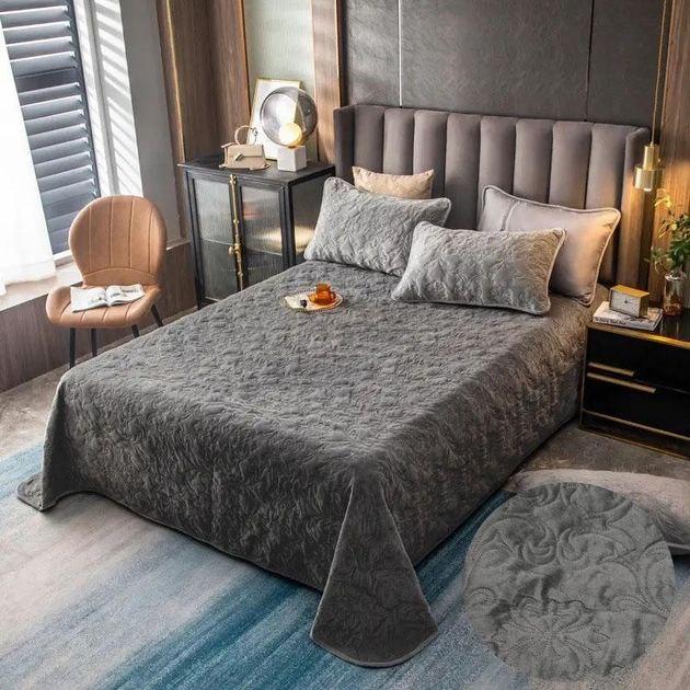 Покривало велюрове з наволочками (Антрацит, 200х220)