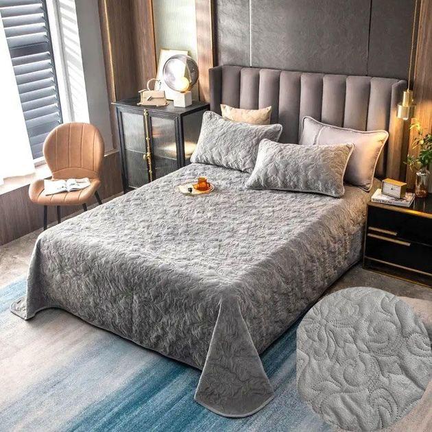 Покривало велюрове з наволочками (Світло-сірий, 200х220)