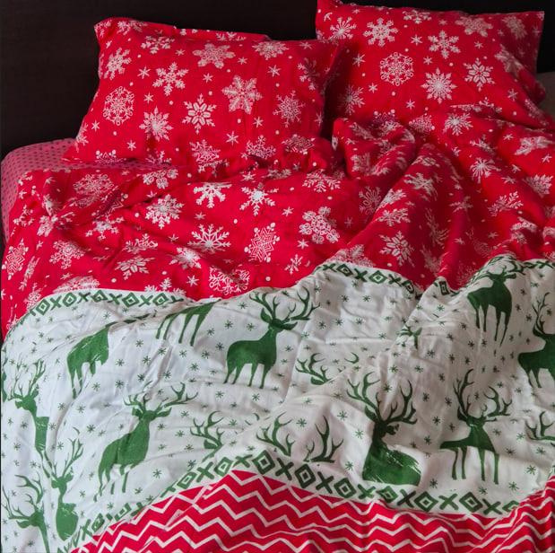 Постільна білизна фланель євро (Сніжинки, 200х220)
