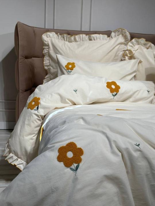 Постільна білизна молочного кольору з вишивкою виготовлена із вареної бавовни від турецького виробника Saheser.
