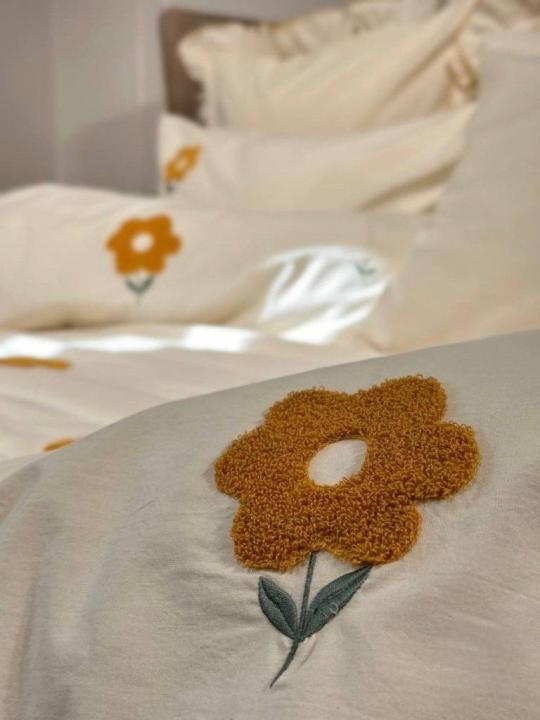 Це повністю натуральна постіль, яка надзвичайно м'ягка й приємна на дотик. Має виражену текстуру та характерну матову тканину, як для тканини з вареної бавовни.