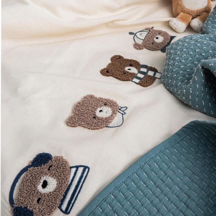 Дитяча постіль Saheser з об'ємною вишивкою — преміальна турбота з перших днів.