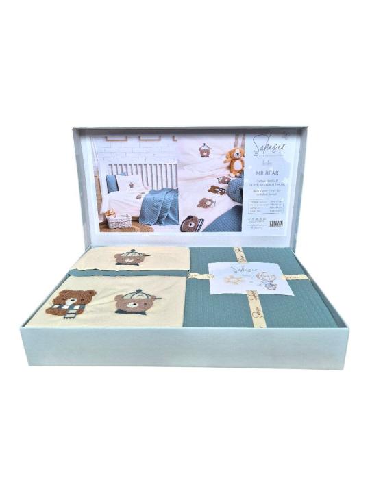 Елегантний комплект дитячої постелі від Saheser створений для батьків, які обирають безкомпромісну якість та натуральність. Виготовлений зі 100% органічної турецької бавовни, комплект поєднує делікатну м’якість, повітропроникність і безпечність для чутливої шкіри немовляти.