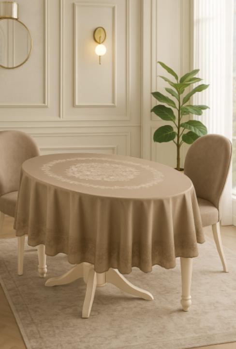 Скатертина з тефлоновим покриттям. Не вбирає вологу та відштовхує бруд. З цією скатертиною ви більше не хвилюватиметесь через випадково розлитий напій, адже будь-які плями можна промокнути серветкою і нічого не залишиться.