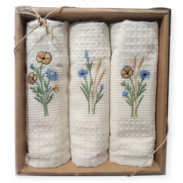 Вафельні рушники на кухню з вишивкою.